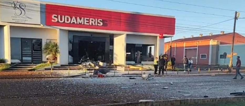 Un grupo comando integrado por entre 20 y 25 hombres fuertemente armados perpetró en la madrugada de este jueves 26 un violento asalto a la sucursal del Banco Sudameris en la ciudad de Naranjal, zona Sur del Alto Paraná, causando severos daños estructurales al edificio tras detonar explosivos en el acceso principal.