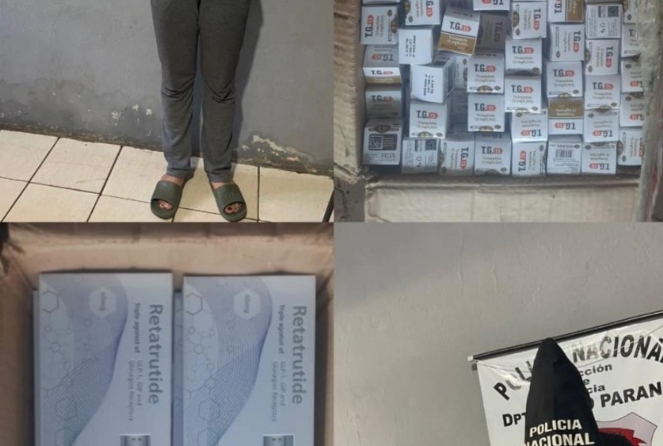 Según manifestaron los ocupantes, se trataba de dosis de Tirzepatida de 15 mg y Retatrutide de 40 mg, pero no contaban con los documentos que respalden la procedencia y tenencia legal de los productos. En el inventario se contabilizaron 493 dosis de Tirzepatida, de procedencia nacional, laboratorio Indufar, y 144 dosis de Retatrutide, de origen alemán.