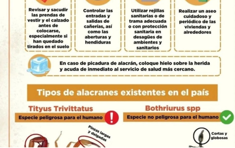Salud alerta sobre riesgos de picaduras de alacrán en temporada de calor